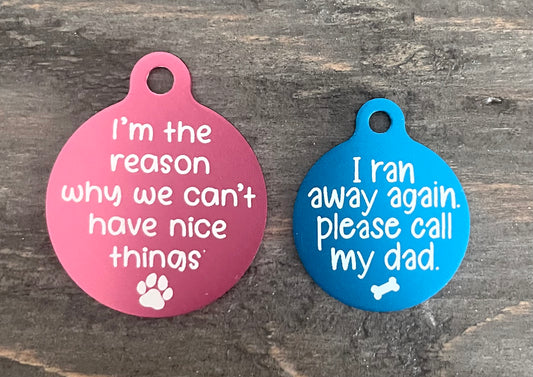 Pet Tag (Round) - I Ran Away Again. Please Call My Dad.