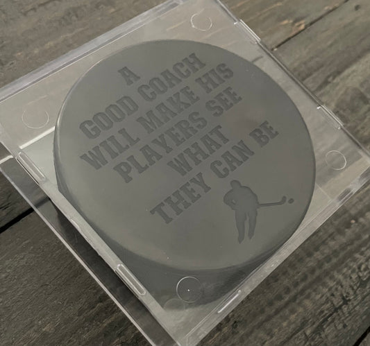 Engraved Inglasco Hockey Puck with Display Case - A Good Coach