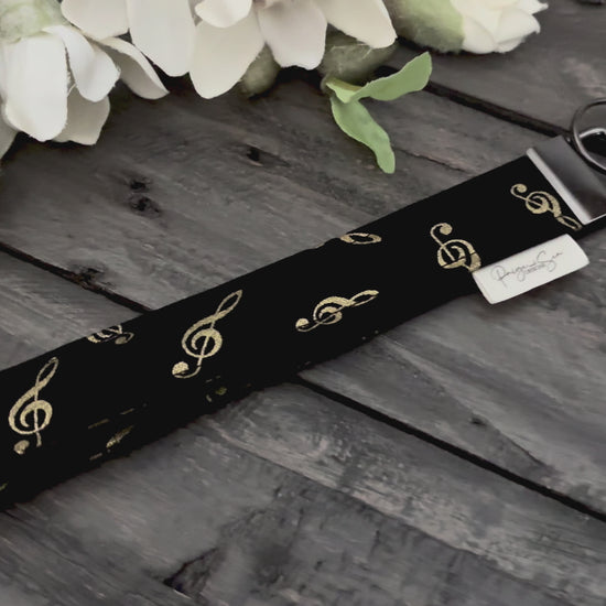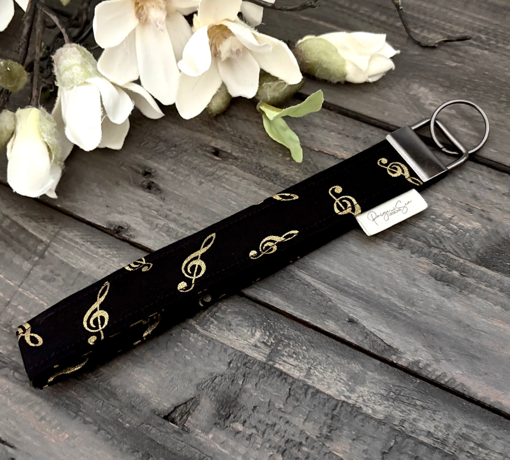 Wristlet Key Fob Strap - Black & Gold Treble Clefs