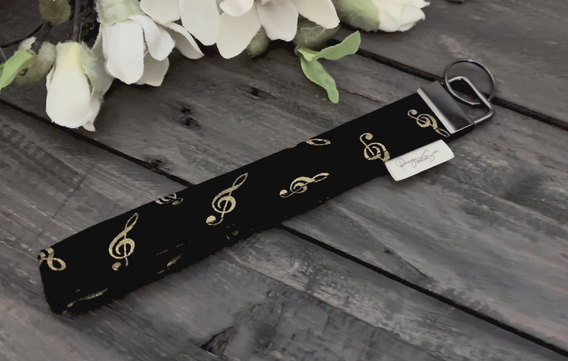 These beautiful “Treble Clef" pattern key fob wristlet straps are perfect for any music lover as a convenient and fashionable way to keep your keys organized!